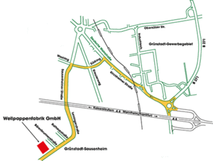 Am Ortsende von Sausenheim befindet sich die Wellpappenfabrik GmbH auf der rechten Seite.